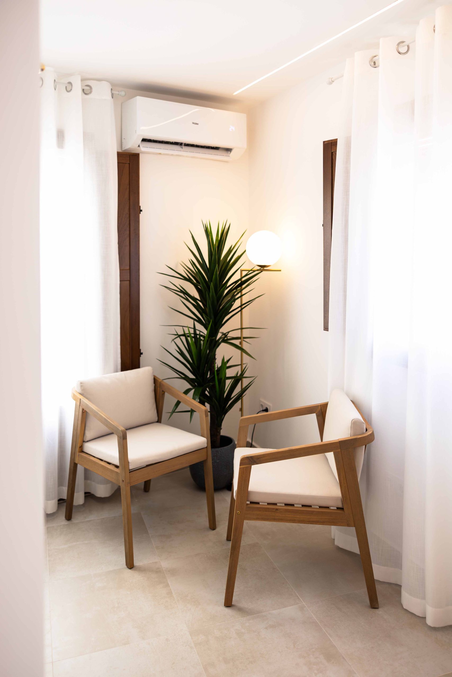 Su fachada discreta y moderna se integra con armonía en el entorno, invitando a descubrir en su interior un espacio de calma, con una decoración en tonos arena y madera que refleja la esencia mediterránea. Un edificio pensado para quienes buscan la elegancia de lo contemporáneo sin renunciar al encanto de lo auténtico.